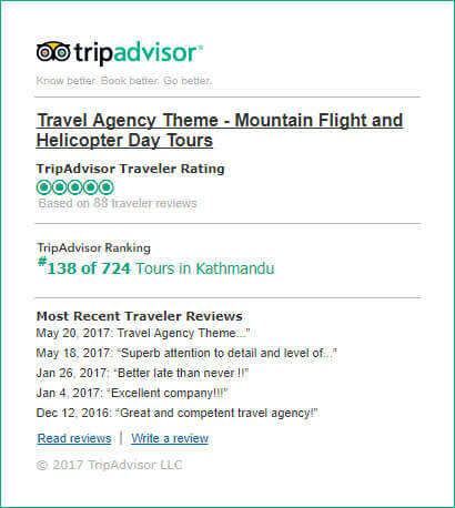 We've received Certificate of Excellence award from TripAdvisor, the world's largest travel website.